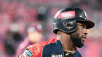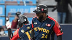 [OSEN=수원, 민경훈 기자] 14일 오후 수원 KT위즈파크에서 '2020 신한은행 SOL KBO리그' KT 위즈와 키움 히어로즈의 경기가 열렸다.1회말 1사 주자 1루 KT 로하스가 우월 역전 투런 홈런을 날린 후 덕아웃으로 들어가며 황재균과 바디체