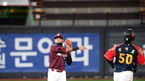 [OSEN=수원, 민경훈 기자] 14일 오후 수원 KT위즈파크에서 '2020 신한은행 SOL KBO리그' KT 위즈와 키움 히어로즈의 경기가 열렸다.4회말 무사 주자 1루 KT 문상철의 3루수 앞 병살타때 키움 2루수 러셀이 2루에서 KT 강백호를 포스아웃 시
