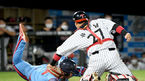 [OSEN=수원, 민경훈 기자] 14일 오후 수원 KT위즈파크에서 '2020 신한은행 SOL KBO리그' KT 위즈와 키움 히어로즈의 경기가 열렸다.5회초 2사 주자 만루 키움 박준태가 타석에서 밀어내기 볼넷을 얻어내며 이정후가 홈을 밟고 있다./rumi@o