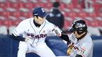 [OSEN=잠실, 민경훈 기자] 15일 오후 서울 잠실구장에서 '2020 신한은행 SOL KBO리그' 두산 베어스와 한화 이글스의 경기가 열렸다.2회초 1사 주자 2루 한화 정진호의 중견수 플라이 아웃때 한화 김민하가 3루에 세이프 되고 있다./ rumi@o