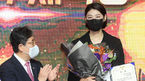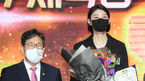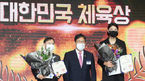 [OSEN=민경훈 기자]15일 오후 서울 중구 더 플라자 호텔 그랜드볼룸에서 제 58회 대한민국체육상 및 2020 체육발전유공자 포상 전수식이 열렸다.단상 위에서 흥국생명 여자 배구선수 김연경이 박양우 문화체육관광부 장관에게 경기