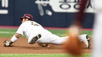 [OSEN=고척, 최규한 기자] 16일 오후 서울 고척 스카이돔에서 ‘2020 신한은행 SOL KBO리그’ 키움 히어로즈와 두산 베어스의 경기가 열렸다.6회초 1사 2루 상황 두산 정수빈의 내야 안타 때 키움 1루수 박병호가 몸을 날려 타구