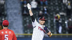 [OSEN=잠실,박준형 기자] 17일 오후 서울 잠실구장에서 KBO리그 LG 트윈스와 KIA 타이거즈의 경기가 진행됐다.3회말 2사 LG 김민성이 2루타를 날리고 윙 세리머니를 하고 있다/ soul1014@osen.co.kr