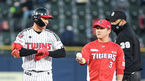 [OSEN=잠실,박준형 기자] 17일 오후 서울 잠실구장에서 KBO리그 LG 트윈스와 KIA 타이거즈의 경기가 진행됐다.3회초 1사 1,3루 KIA 최형우가 동점 3점 홈런을 날리고 홈을 밟은뒤 맷 윌리엄스 감독의 축하를 받고 있다/ soul1014@osen.co.kr