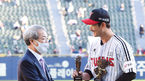 [OSEN=잠실,박준형 기자] 17일 오후 서울 잠실구장에서 KBO리그 LG 트윈스와 KIA 타이거즈의 경기가 진행됐다.경기 앞서 LG 박용택이 KBO 최초 통산 2500안타 달성 및 최다 출장 신기록 달성 기념 KBO 시상식을 갖고 정운찬 KBO 총재에게