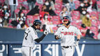 [OSEN=잠실,박준형 기자] 17일 오후 서울 잠실구장에서 KBO리그 LG 트윈스와 KIA 타이거즈의 경기가 진행됐다.2회말 1사 LG 정주현이 솔로홈런을 날리고 홈을 밟고 있다. / soul1014@osen.co.kr