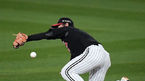 [OSEN=수원, 민경훈 기자] 20일 오후 수원 KT위즈파크에서 '2020 신한은행 SOL KBO리그' KT 위즈와 LG 트윈스의 경기가 열렸다.1회말 KT 선두타자 조용호의 우중간 안타때 LG 2루수 정주현이 몸을 날렸지만 볼이 빠지고 있다./rumi@osen.co.kr