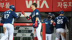 [OSEN=광주, 곽영래 기자] 20일 오후 광주-기아 챔피언스필드에서 '2020 신한은행 SOL KBO리그' KIA 타이거즈와 NC 다이노스의 경기가 열렸다.2회초 2사 2루 NC 이동욱 감독이 투런 홈런을 때린 양의지와 기뻐하고 있다. /youngrae@osen.co.kr