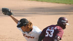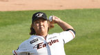 [OSEN=서산, 곽영래 기자] 20일 오후 충청남도 서산 한화이글스 서산구장에서 ‘2020 퓨처스리그’ 한화 이글스와 고양 히어로즈와의 경기가 열렸다.7회초 1사 한화 이현호가 고양 히어로즈 송우현의 1루수 앞 땅볼때 1루 베이