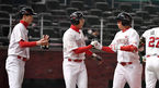 [OSEN=인천, 최규한 기자] 21일 오후 인천 SK행복드림구장에서 ‘2020 신한은행 SOL KBO리그’ SK 와이번스와 롯데 자이언츠의 경기가 열렸다.1회말 무사 1, 2루 상황 SK 최정이 역전 중월 스리런포를 날리고 홈을 밟은 뒤 오태곤-