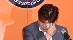 [OSEN=대전, 민경훈 기자] 한화 이글스의 패랜차이즈 스타 김태균이 22일 오후 한화생명이글스파크에서 은퇴 기자회견을 가졌다.김태균이 눈물을 흘리며 기자회견을 하고 있다./rumi@osen.co.kr