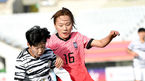 [OSEN=파주, 최규한 기자] 22일 오후 경기도 파주스타디움에서 여자축구대표팀 스페셜매치 ‘여자국가대표팀 vs 여자U-20’이 열렸다.후반, U-20 김명진의 돌파를 A대표팀 장슬기가 수비하고 있다. / dreamer@osen.co.kr