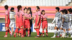 [OSEN=파주, 최규한 기자] 22일 오후 경기도 파주스타디움에서 열린 여자축구대표팀 스페셜매치 ‘여자국가대표팀 vs 여자U-20’, A대표팀이 1-0으로 U-20대표팀을 꺾고 승리했다.경기를 마치고 A대표팀 선수들이 승리 인사를