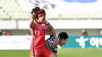 [OSEN=파주, 최규한 기자] 22일 오후 경기도 파주스타디움에서 여자축구대표팀 스페셜매치 ‘여자국가대표팀 vs 여자U-20’이 열렸다.후반, U-20 박믿음과 A대표팀 심서연이 몸싸움을 벌이고 있다. / dreamer@osen.co.kr