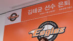 [OSEN=대전, 민경훈 기자] 한화 이글스의 프랜차이즈 스타 김태균이 22일 오후 한화생명이글스파크에서 은퇴 기자회견을 가졌다.김태균이 최원호 감독대행에게 꽃다발을 받고 있다./rumi@osen.co.kr