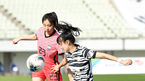 [OSEN=파주, 최규한 기자] 22일 오후 경기도 파주스타디움에서 여자축구대표팀 스페셜매치 ‘여자국가대표팀 vs 여자U-20’이 열렸다.전반, A대표팀 강채림이 돌파를 시도할 때 U-20 이덕주가 태클로 저지하고 있다. / dreamer@ose