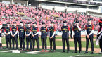 [OSEN=수원, 조은정 기자] 25일 오후 수원 KT위즈파크에서 '2020 신한은행 SOL KBO리그' KT 위즈와 롯데 자이언츠의 경기가 열렸다.5회말 끝난 후 클리닝 타임 때 KT 신인 선수들이 팬들 앞에서 인사를 하고 있다. /cej@osen.co.kr
