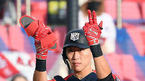 [OSEN=수원, 조은정 기자] 25일 오후 수원 KT위즈파크에서 '2020 신한은행 SOL KBO리그' KT 위즈와 롯데 자이언츠의 경기가 열렸다.6회말 1사 KT 박승욱이 우월 3루타를 때려낸 뒤 세리머니를 하고 있다. /cej@osen.co.kr