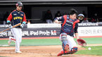 [OSEN=수원, 조은정 기자] 25일 오후 수원 KT위즈파크에서 '2020 신한은행 SOL KBO리그' KT 위즈와 롯데 자이언츠의 경기가 열렸다.2회말 무사 1루 KT 강민국의 희생번트가 롯데 포수 김준태의 몸에 맞고 굴절되고 있다. /cej@osen.co.kr