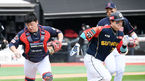 [OSEN=수원, 조은정 기자] 25일 오후 수원 KT위즈파크에서 '2020 신한은행 SOL KBO리그' KT 위즈와 롯데 자이언츠의 경기가 열렸다.1회초 1사 1루 KT 2루수 강민국이 롯데 1루주자 손아섭을 포스아웃 시킨 뒤 병살을 연결짓고 있다. /cej@ose