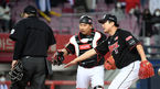[OSEN=광주, 이대선 기자] 28일 오후 광주기아챔피언스필드에서 ‘2020 신한은행 SOL KBO 리그’ KIA 타이거즈와 KT 위즈의 경기가 열렸다.9회초 1사 2루에서 KIA 박준표가 실책을 범한 황대인을 위로하고 있다./sunday@osen.co.kr