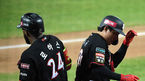 [OSEN=광주, 이대선 기자] 28일 오후 광주기아챔피언스필드에서 ‘2020 신한은행 SOL KBO 리그’ KIA 타이거즈와 KT 위즈의 경기가 열렸다.1회초 1사에서 KT 황재균이 좌월 솔로 홈런을 치고 홈에서 로하스와 하이파이브를 하고 있
