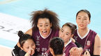 [OSEN=대전,민경훈 기자] 28일 오후 대전 충무체육관에서 도드람 2020-2021 V리그 여자부 KGC인삼공사와 도로공사의 경기가 진행됐다.1세트 인삼공사 선수들이 공격에 성공한 후 기뻐하고 있다./ rumi@osen.co.kr
