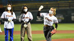 [OSEN=대전, 이대선 기자] 29일 오후 한화생명이글스파크에서 ‘2020 신한은행 SOL KBO 리그’ 한화 이글스와 KT 위즈의 경기가 열렸다.경기에 앞서 시구를 한 그룹 환불원정대 제시가 시타자 이효리에게 향한 공에 놀라고 있다.
