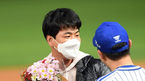 [OSEN=인천, 민경훈 기자] 30일 오후 인천 SK행복드림구장에서 ‘2020 신한은행 SOL KBO리그’ SK 와이번스와 LG 트윈스의 경기가 열렸다.은퇴를 선언한 SK 윤희상이 1회 한 타자만 상대하고 마운드를 내려가며 박경완 감독대행과
