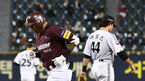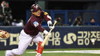 [OSEN=잠실,박준형 기자] 2일 오후 서울 잠실구장에서 ‘2020 신한은행 SOL KBO리그’ 와일드카드 1차전 LG 트윈스와 키움 히어로즈의 경기가 열렸다.연장10회초 1사 1루 키움 대타 러셀이 내야땅볼 타구를 날리고있다 / soul1014@os