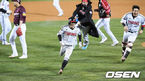 [OSEN=잠실, 최규한 기자] 2일 오후 서울 잠실구장에서 ‘2020 신한은행 SOL KBO리그’ 와일드카드 1차전 LG 트윈스와 키움 히어로즈의 경기가 열렸다.연장 13회말 2사 만루 상황 LG 신민재가 끝내기 안타를 날리고 정근우와 포옹