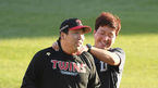 [OSEN=잠실, 민경훈 기자] 4일 오후 서울 잠실야구장에서 '2020 신한은행 SOL KBO리그' 준플레이오프 1차전 두산 베어스와 LG 트윈스의 경기가 열릴 예정인 가운데 그라운드 훈련이 진행됐다.경기 전 그라운드 위에서 LG 김현수가 환하