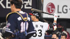 [OSEN=박준형 기자]5일 오후 서울 잠실야구장에서 ‘2020 신한은행 SOL KBO리그’ 준플레이오프 2차전 LG 트윈스와 두산 베어스의 경기가 진행됐다.8회말 무사 1루 LG 대타 박용택이 내야플라이를 날리고 있다. / soul1014@osen.co.kr