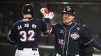 [OSEN=박준형 기자]5일 오후 서울 잠실야구장에서 ‘2020 신한은행 SOL KBO리그’ 준플레이오프 2차전 LG 트윈스와 두산 베어스의 경기가 진행됐다.4회초 2사 1루 두산 오재일이 2점 홈런을 날리고 김재환과 하이파이브를 하고