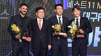 [OSEN=곽영래 기자] 5일 오후 서울 홍은동 스위스그랜드호텔에서 하나원큐 K리그 2020 시상식이 열렸다.베스트11 MF에 선정된 세징야, 한교원, 손준호가 한국프로축구연맹 권오갑 총재와 포토타임을 갖고있다. /youngrae@osen.co.kr