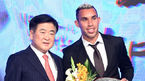[OSEN=곽영래 기자] 5일 오후 서울 홍은동 스위스그랜드호텔에서 하나원큐 K리그 2020 시상식이 열렸다.EA Most Seleceted Player상을 수상한 홍철이한국프로축구연맹 권오갑 총재와 포토타임을 갖고있다. /youngrae@osen.co.kr