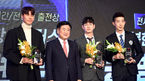[OSEN=곽영래 기자] 5일 오후 서울 홍은동 스위스그랜드호텔에서 하나원큐 K리그 2020 시상식이 열렸다.전시간, 전경기 출전을 기록한 조현우, 강현무, 송범근이 한국프로축구연맹 권오갑 총재와 포토타임을 갖고있다. /youngrae@osen.