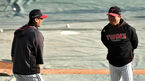 [OSEN=잠실, 최규한 기자] 5일 오후 서울 잠실야구장에서 ‘2020 신한은행 SOL KBO리그’ 준플레이오프 2차전 LG 트윈스와 두산 베어스의 경기가 열린다.경기를 앞두고 진행된 훈련에서 LG 류중일 감독과 박용택이 훈련 중 대화