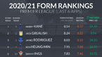 [OSEN=이균재 기자] 손흥민(토트넘)이 잉글랜드 프리미어리그(EPL) 폼 랭킹서 2계단 하락한 4위에 자리했다.유럽축구통계전문업체인 후스코어드닷컴은 3일(이하 한국시간) 2020-2021시즌 EPL 폼 랭킹을 발표했다. 지난 라운드 2위에 올