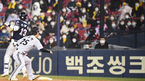 [OSEN=박준형 기자]5일 오후 서울 잠실야구장에서 ‘2020 신한은행 SOL KBO리그’ 준플레이오프 2차전 LG 트윈스와 두산 베어스의 경기가 진행됐다.9회초 무사 1루 두산 허경민의 희생번트때 실책을 틈타 1루 주자 이유찬이 득점