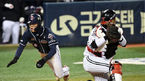 [OSEN=박준형 기자]5일 오후 서울 잠실야구장에서 ‘2020 신한은행 SOL KBO리그’ 준플레이오프 2차전 LG 트윈스와 두산 베어스의 경기가 진행됐다.9회초 무사 1루 두산 허경민의 희생번트때 LG 이성우 포수가 홈쇄도하는 1루 주