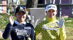 [OSEN=인천, 최규한 기자] 8일 인천 영종도 스카이72 골프앤리조트 오션코스(파72)에서 한국여자프로골프(KLPGA) 투어 하나금융그룹 챔피언십(총상금 15억원) 최종라운드가 열렸다.박현경과 조혜림이 18번홀 홀아웃하며 취재진을 향