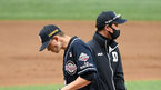 [OSEN=고척, 곽영래 기자] 9일 오후 서울 고척스카이돔에서 '2020 신한은행 SOL KBO리그' 플레이오프 KT 위즈와 두산 베어스의 경기가 열렸다.8회말 무사 1루 두산 정재훈 코치가 마운드에 올라 플렉센과 이야기를 나누고 있다. /youngrae@