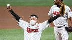 [OSEN=고척돔, 지형준 기자] 10일 오후 서울 고척스카이돔에서 '2020 신한은행 SOL KBO리그' 플레이오프 KT 위즈와 두산 베어스의 경기가 열렸다.경기에 앞서 KT 김주일 응원단장이 시구를 하고 있다. /jpnews@osen.co.kr