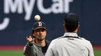 [OSEN=고척, 이대선 기자] 10일 오후 서울 고척스카이돔에서 '2020 신한은행 SOL KBO리그' 플레이오프 KT 위즈와 두산 베어스의 경기가 열릴 예정이다.경기에 앞서 KT 쿠에바스가 두산 선수들과 인사를 나누며 장난을 치고 있다./sunday@os