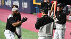 [OSEN=고척, 이대선 기자] 10일 오후 서울 고척스카이돔에서 '2020 신한은행 SOL KBO리그' 플레이오프 KT 위즈와 두산 베어스의 경기가 열릴 예정이다.경기에 앞서 KT 로하스가 동료들과 이야기를 나누고 있다. /sunday@osen.co.kr