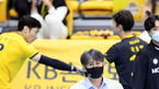 [OSEN=의정부, 조은정 기자] 13일 오후 경기도 의정부실내체육관에서 ‘도드람 2020-2021 V-리그’ KB손해보험과 OK금융그룹의 경기가 열렸다.3세트 KB손해보험 이상열 감독이 비디오 판독 결과가 OK금융그룹의 터치아웃으로 판