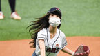 [OSEN=고척, 박준형 기자] 13일 오후 서울 고척스카이돔에서 '2020 신한은행 SOL KBO리그' 플레이오프 4차전 두산 베어스와 KT 위즈의 경기가 열렸다.경기에 앞서 오마이걸 유아가 시구를 하고 있다 ./ soul1014@osen.co.kr