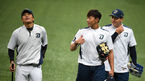 [OSEN=고척돔, 지형준 기자] NC 다이노스와 두산 베어스가 17일 한국시리즈 1차전을 앞두고 15일 오후 서울 고척스카이돔에서 연습을 가졌다.NC 나성범을 비롯한 외야진이 훈련을 하고 있다./jpnews@osen.co.kr