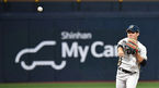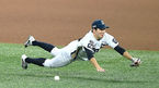 [OSEN=고척, 곽영래 기자] 17일 오후 서울 고척스카이돔에서 '2020 신한은행 SOL KBO리그' 한국시리즈 NC 다이노스와 두산 베어스의 경기가 열렸다.8회초 1사 NC 박민우가 두산 허경민의 타구를 잡기위해 몸을 날리고 있다. /youngrae@osen.c
